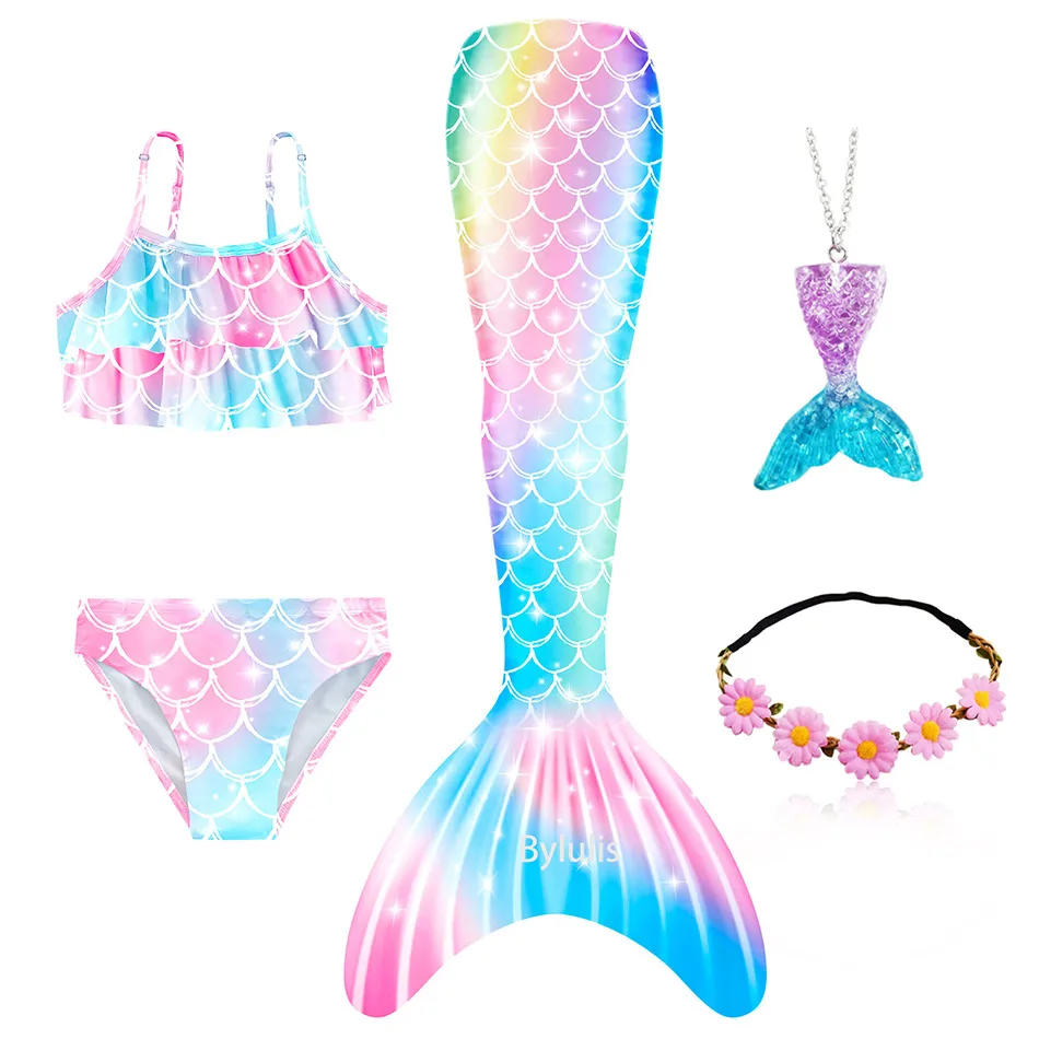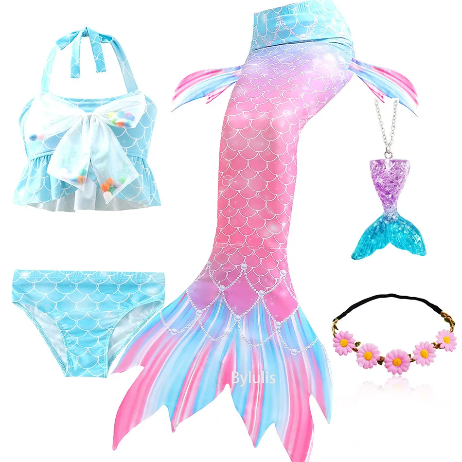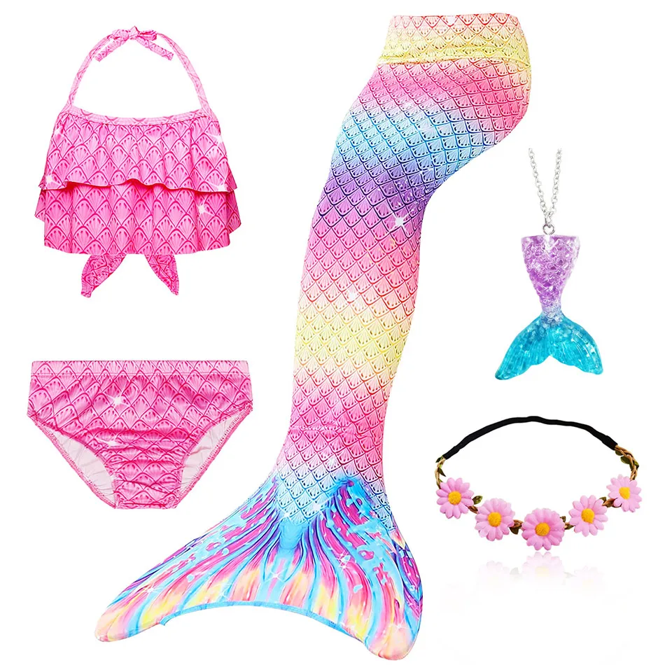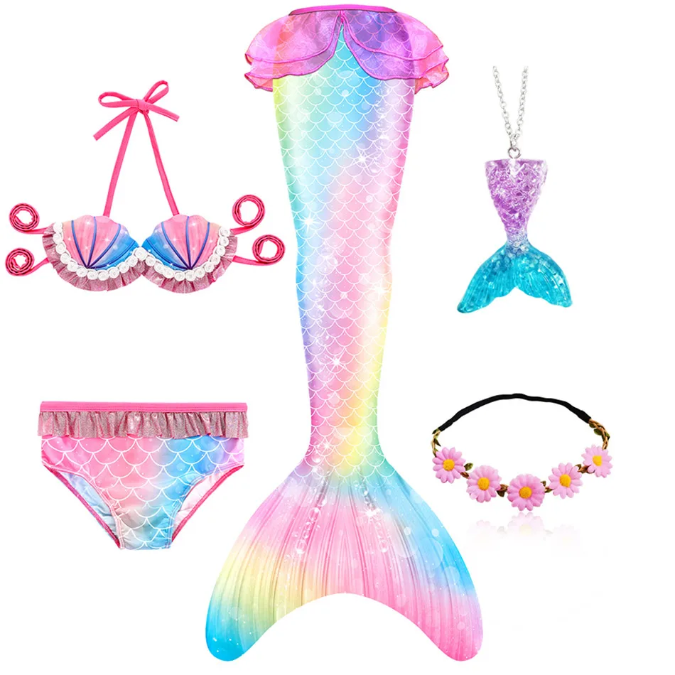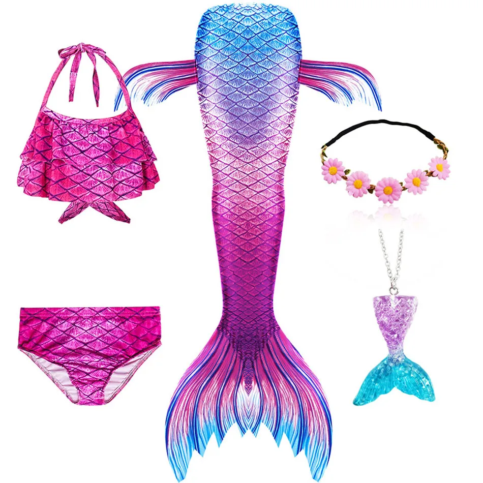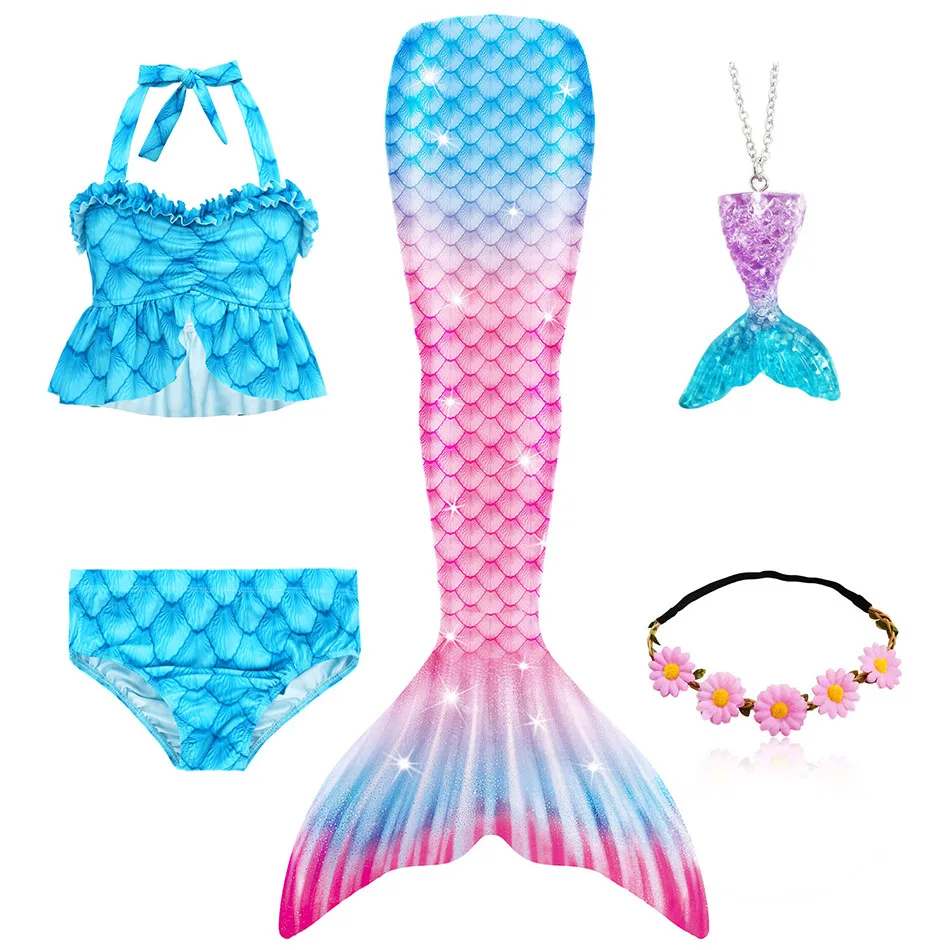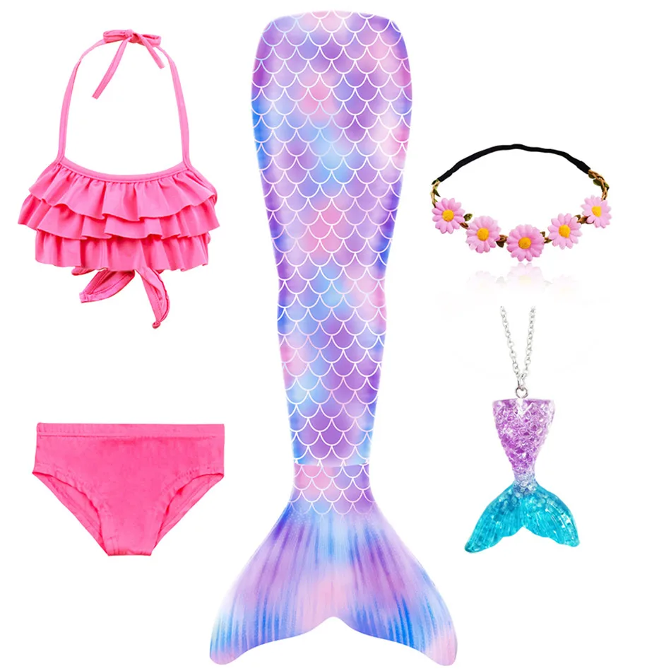 1 * хвост русалки + 1 * Топ + 1 * трусики + 1 * гирлянда + 1 * ожерелье с русалкой (всего 5 предметов/комплект)