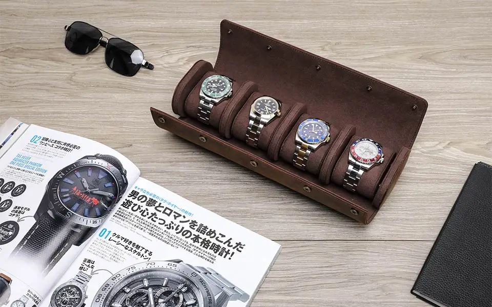 ★[Часы с ремешком из натуральной кожи, коробка для хранения] из высококачественной воловьей кожи и оснащен часы подушки, он может держать 4 обычных часы