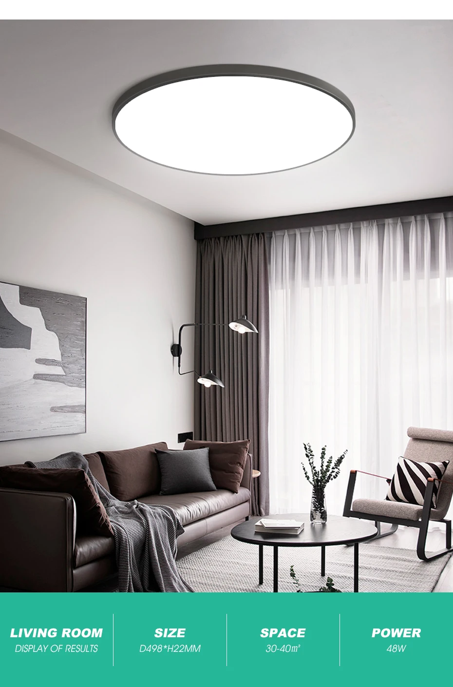 • 【Стильный тонкий дизайн】Ультратонкий Светодиодный потолочный светильник, свободное внутреннее пространство, не заставляя вас чувствовать себя подавленным