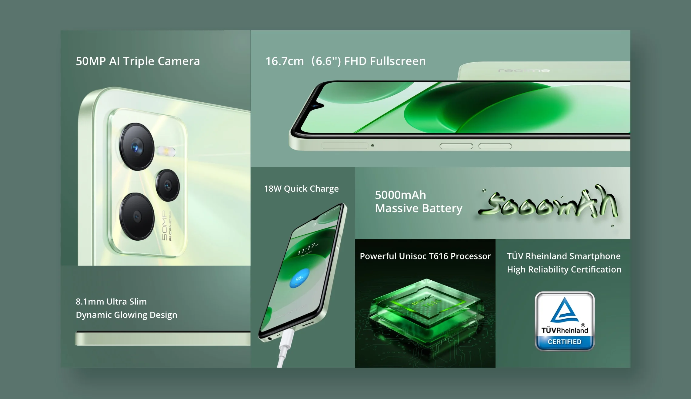 Realme C35 Русская версия 4 Гб + 64 ГБ/4 Гб + 128 ГБ с оригинальным зарядным устройством ЕС!