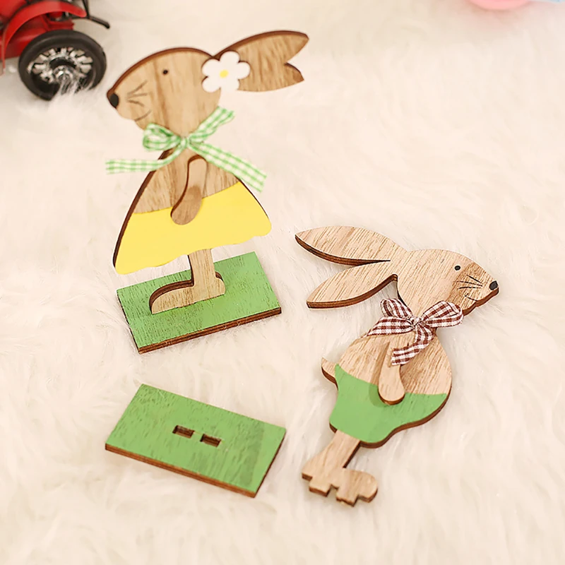 Скандинавские Пасхальные декоративные статуэтки, Деревянный милый мультяшный кролик, формы, украшения, ремесло, подарки, аксессуары для домашнего декора