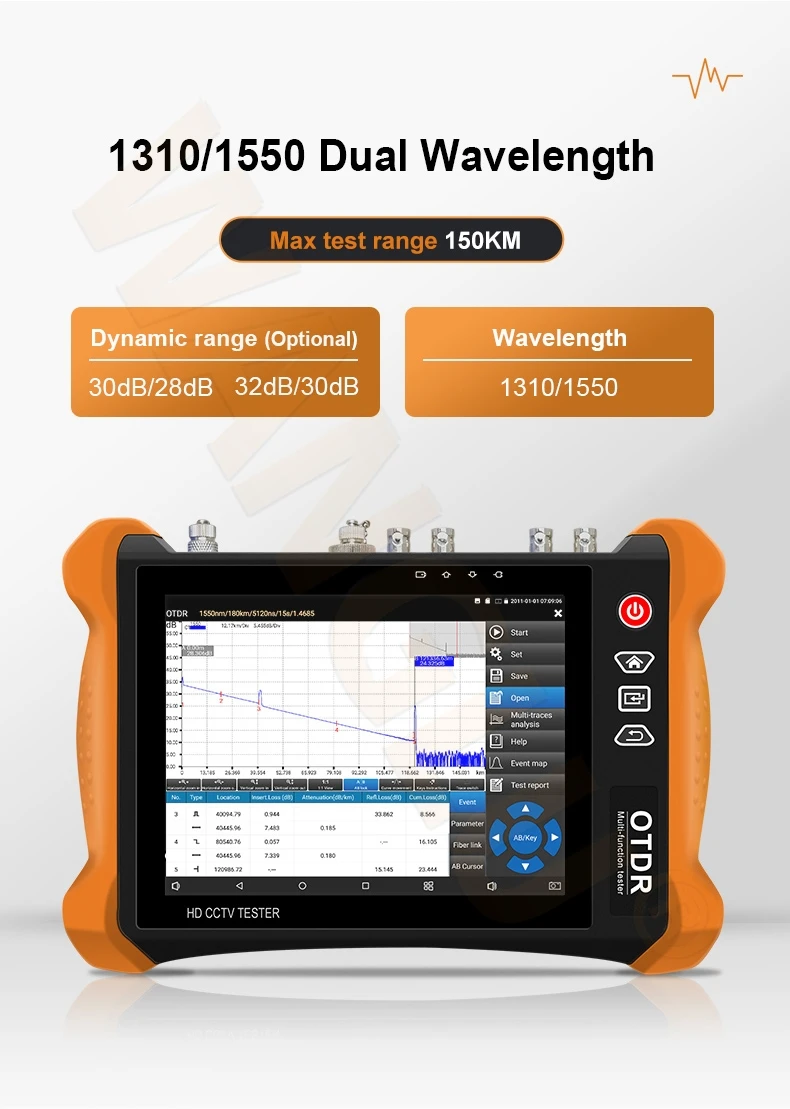● Двойная длина волны 1310/1550, Максимальный диапазон испытаний 150 км
