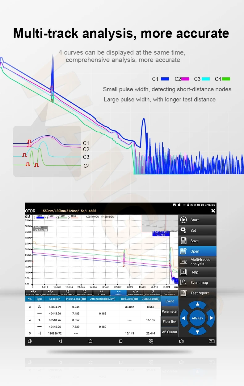 ● Поддержка создания отчетов об испытаниях, включая графики кривой траектории, настройки параметров, информацию о событиях из волокна и информацию о волоконных звеньях. Отчет сохранен в формате EXCEL, PDF или скриншотов и т. Д.