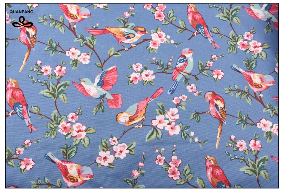 Upholstery Canvas Fabric Duck Fabric For Sofa Shirt Curtain Bag Home Decrotion Handmade Cushion Bird blue shading plants50x150cm
