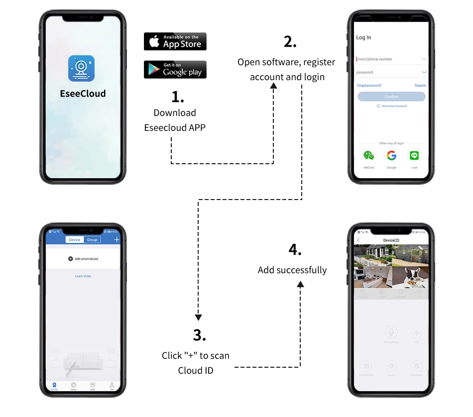 Где бы вы ни находились, только через приложение, вы можете связаться со своим ребенком, родителями, пожилыми людьми, домашними животными и так далее, несмотря на динамик камеры, вы также услышите их звук и достигнете даже на другой стороне земного шара, вы также можете слышать и говорить людей перед камерой через приложение