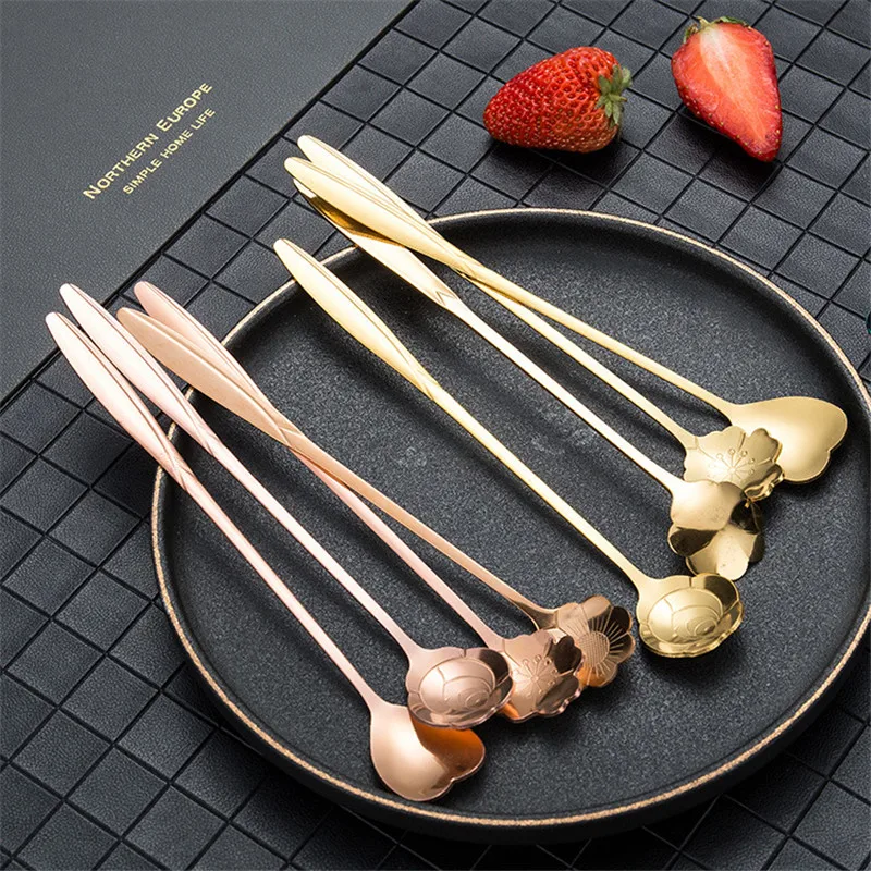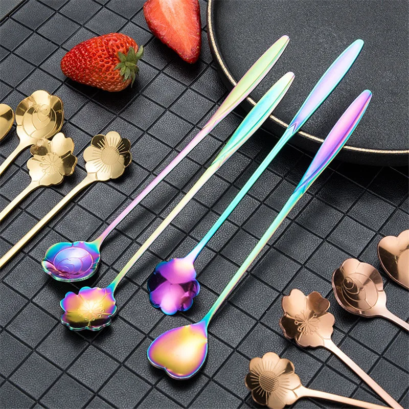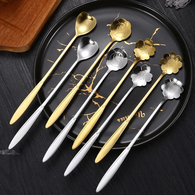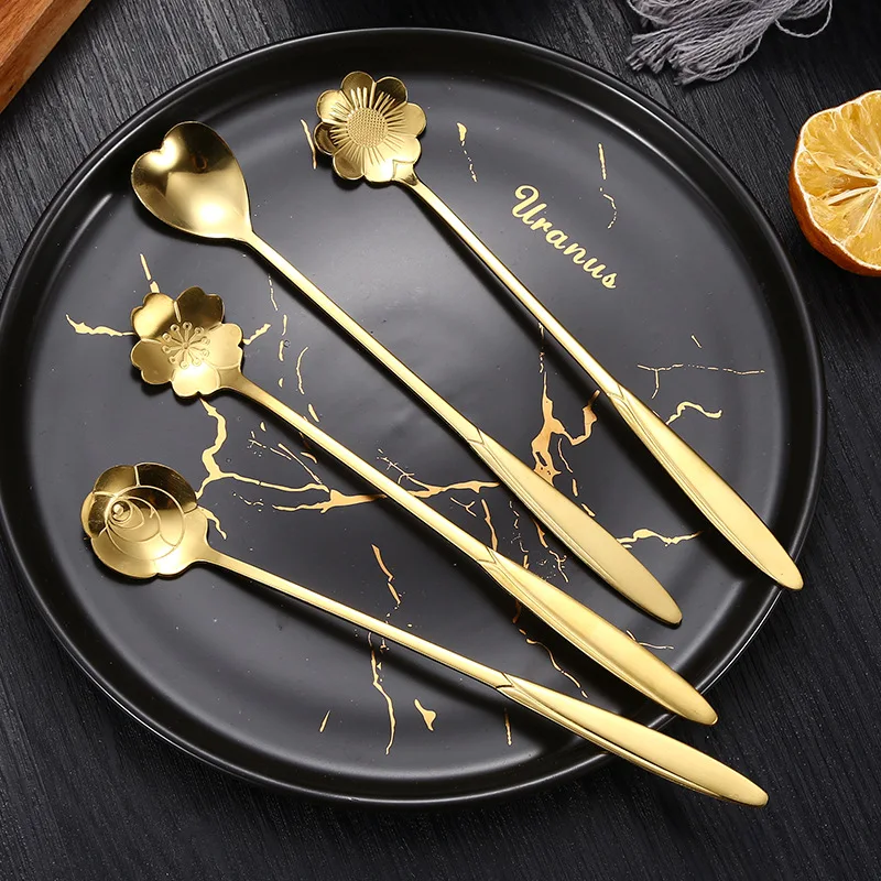 3. Каждая Ложка имеет свой изысканный и элегантный узор (роза, космос, цветение вишни, форма сердца). Изысканный внешний вид идеально подходит для вашей посуды и чашек.