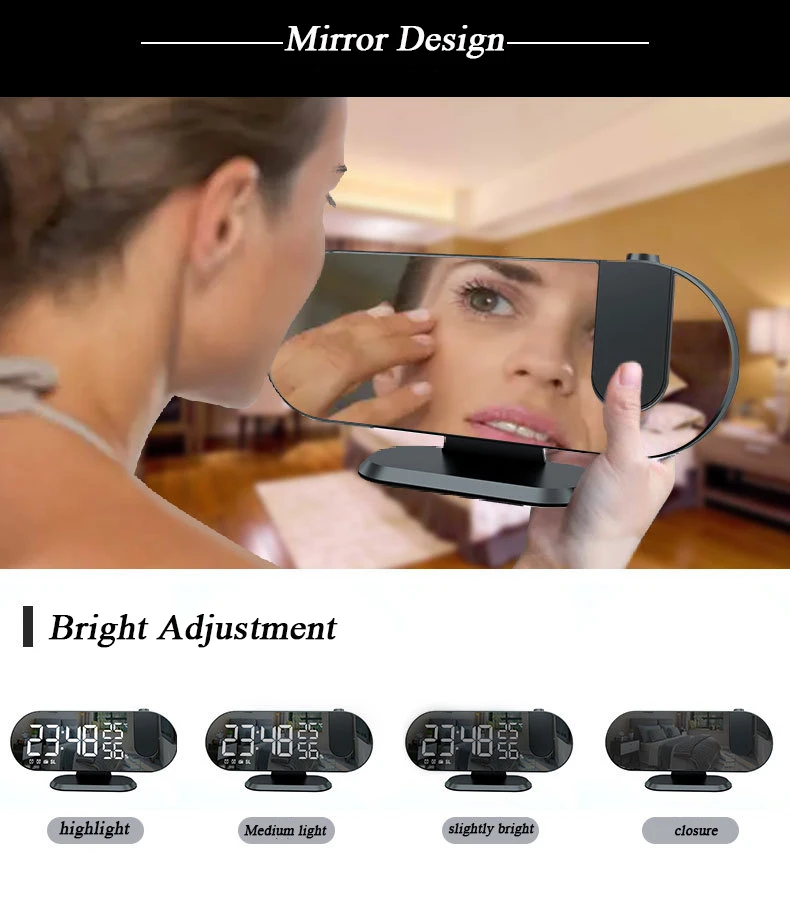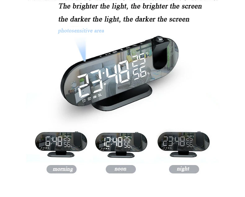 Радиопроекционный Будильник Светодиодный дисплей с большим экраном функция повтора температуры и влажности с одним лицом