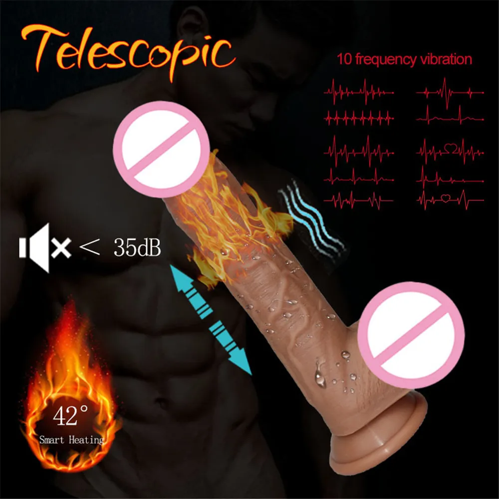 Автоматический телескопический фаллоимитатор с подогревом Вибратор Массаж точки G огромный реалистичный пенис эротический анальный интимные игрушки для женщин товары для взрослых