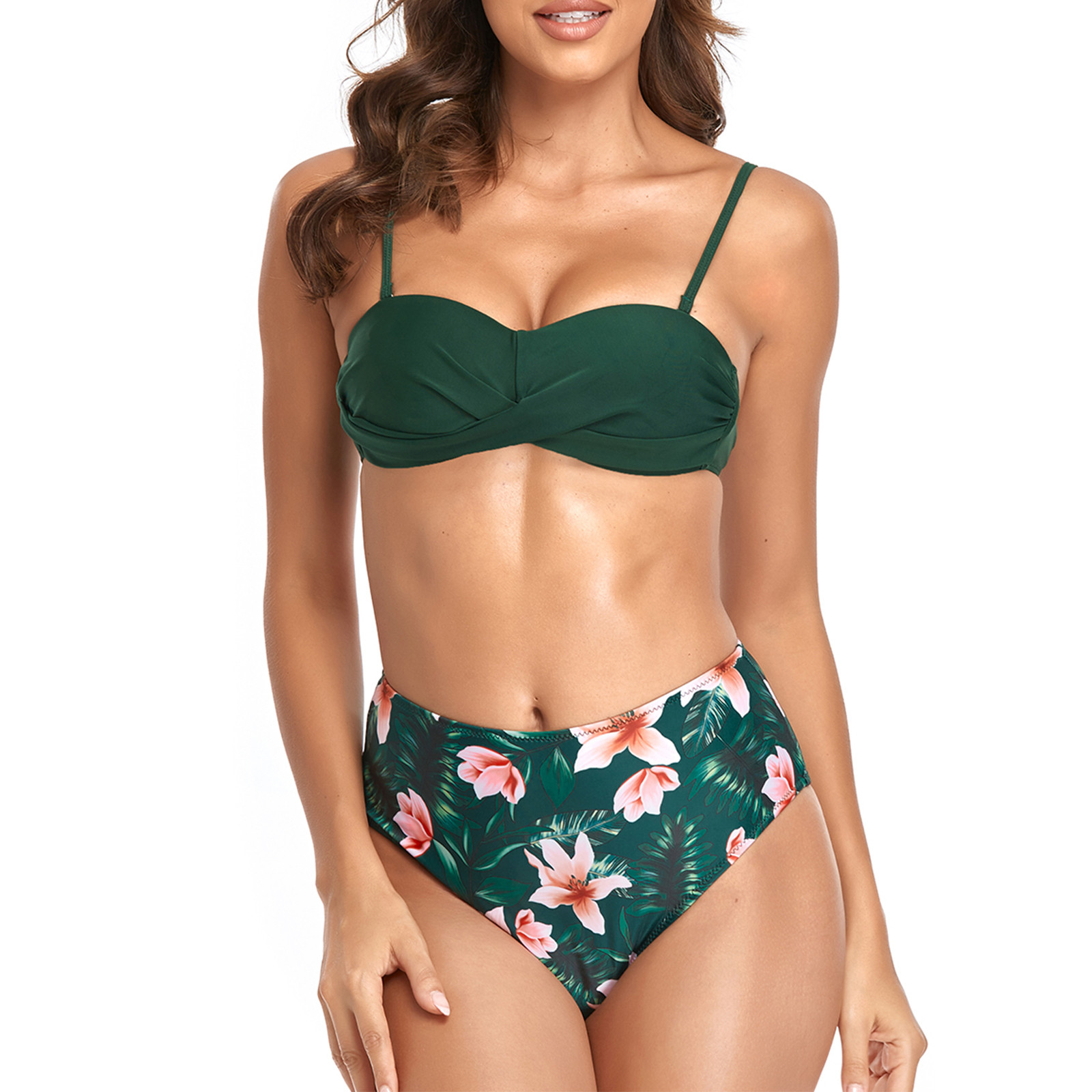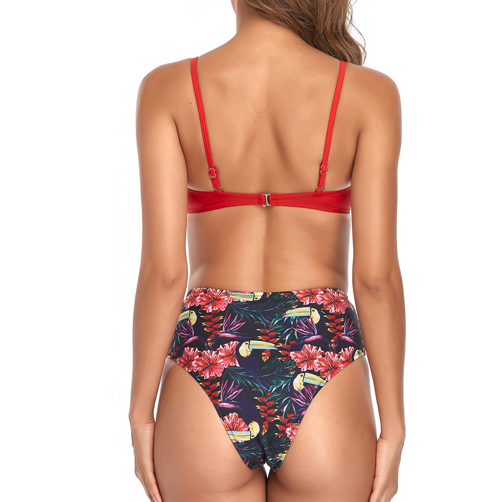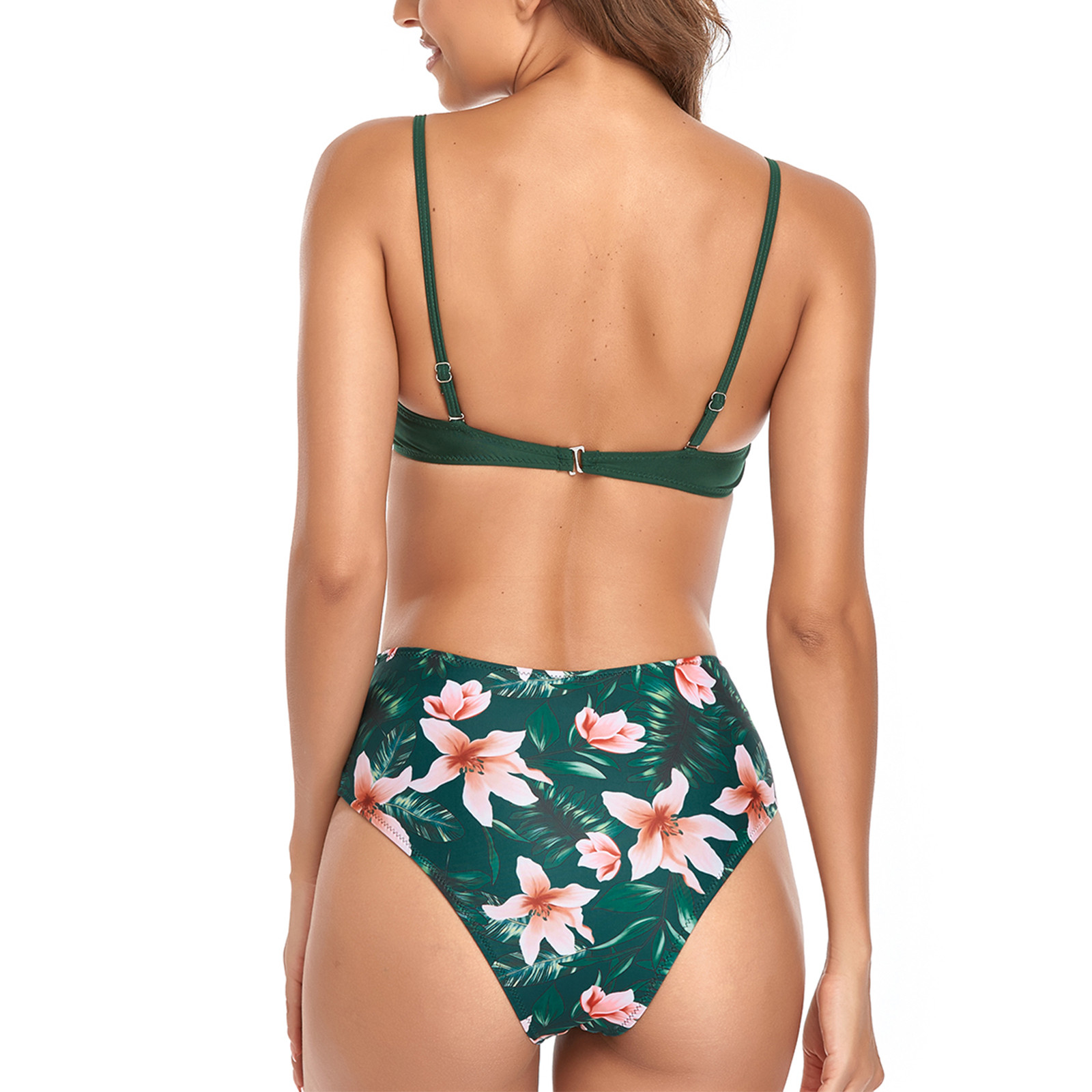 Для женщин крест Высокая талия строка с цветочным принтом пикантные 2 шт. ванный комплект бикини