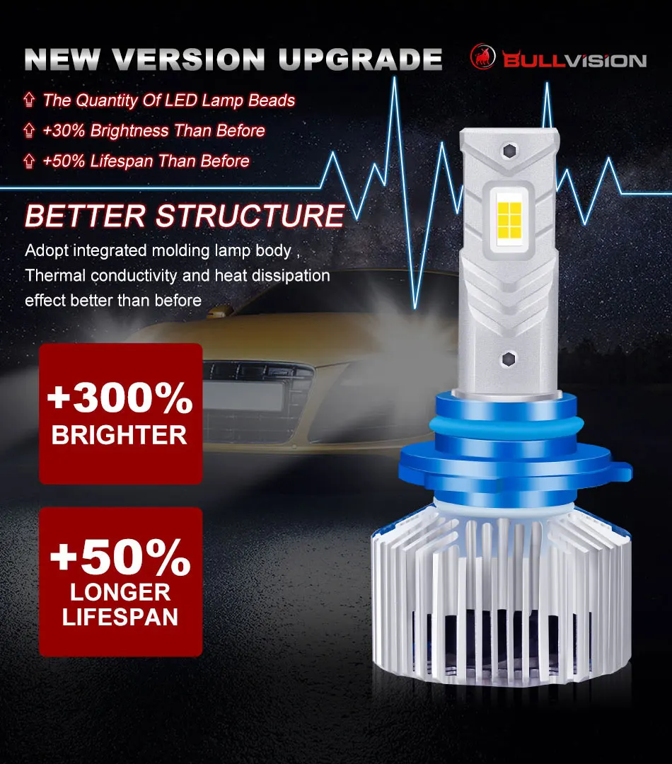 BULLVISION Car Headlight H4 Hi/Lo Beam LED H7 H8 H9 H11 9005 HB3 9006 HB4 90W 30000lm 6500K Auto Headlamp Fog Light Bulbs