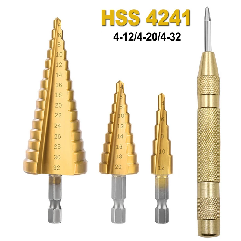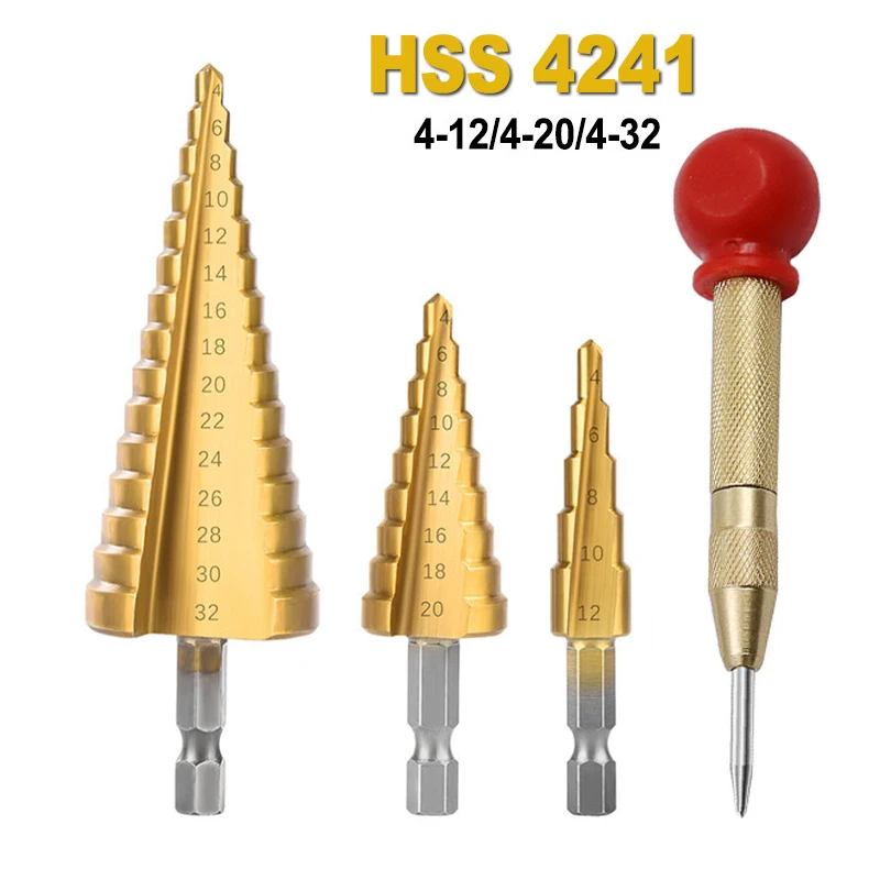 Ступенчатое сверло 4-12 мм 4-20 мм 4-32 мм HSS прямой паз с титановым покрытием резец для дерева и металла сверлильный набор электроинструментов