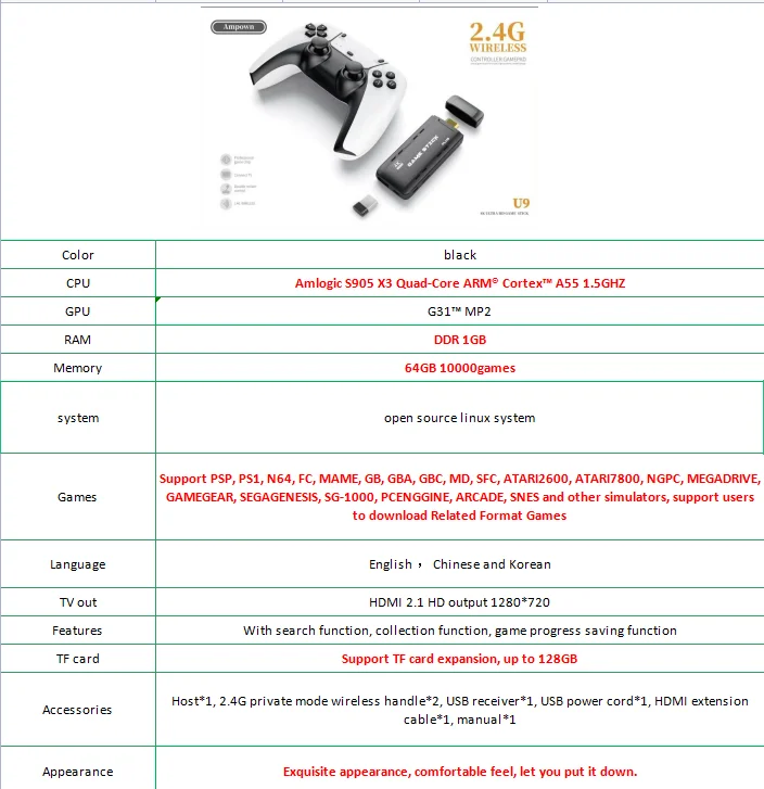 1, [Встроенный 10000 + игр] Ретро игровая консоль поставляется с 10000 + классическими играми, включая поддержку PSP, PS1, N64, FC, MAME, GB, GBA, GBC, MD, SFC, ATARI2600, ATARI7800, NGPC, MEGADRIVE, GAMEGEAR, SEGAGENESIS, SG-1000, PCENGGINE, ARCADE, SNES и другие эмуляторы встроены, нет необходимости загружать и устанавливать, нет необходимости подключаться к телевизору, вы можете играть в более чем 10000 классических игр. (Система linux с открытым исходным кодом поддерживает пользователей для загрузки игр в соответствующих форматах) содержит Высокопроизводительные игровые фишки и мощную вычислительную мощность, так что каждая игра может работать плавно без задержек.
