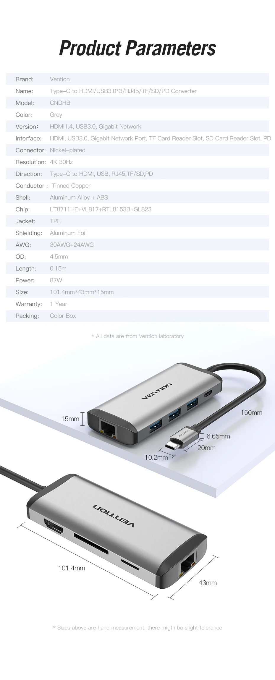 1) 8-в-1 HDMI RJ45 концентратора: HDMI + USB 3,0*3 + RJ45 + TF + SD + зарядное устройство PD