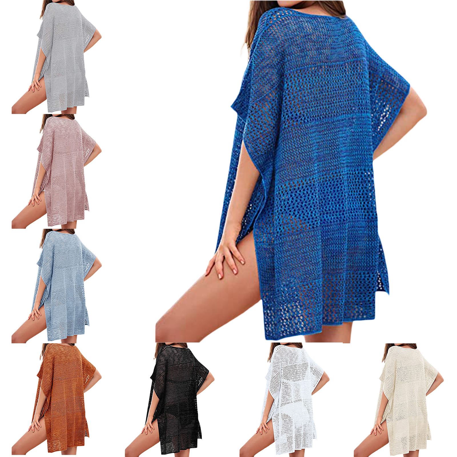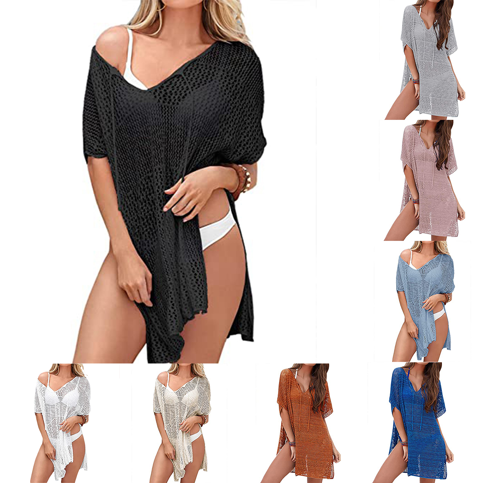 Женское летнее бикини, однотонное короткое свободное мини-платье с коротким рукавом и v-образным вырезом