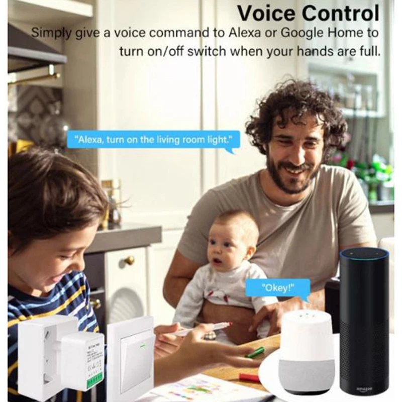 Поддержка голосовых помощников, таких как Tmall Genie, Alexa, GoolHome, и реализации функций, таких как переключатели; «Alexa, включите Кухонные светильники». Вы можете включить свет в одном предложении и наслаждаться удобной умной жизнью.