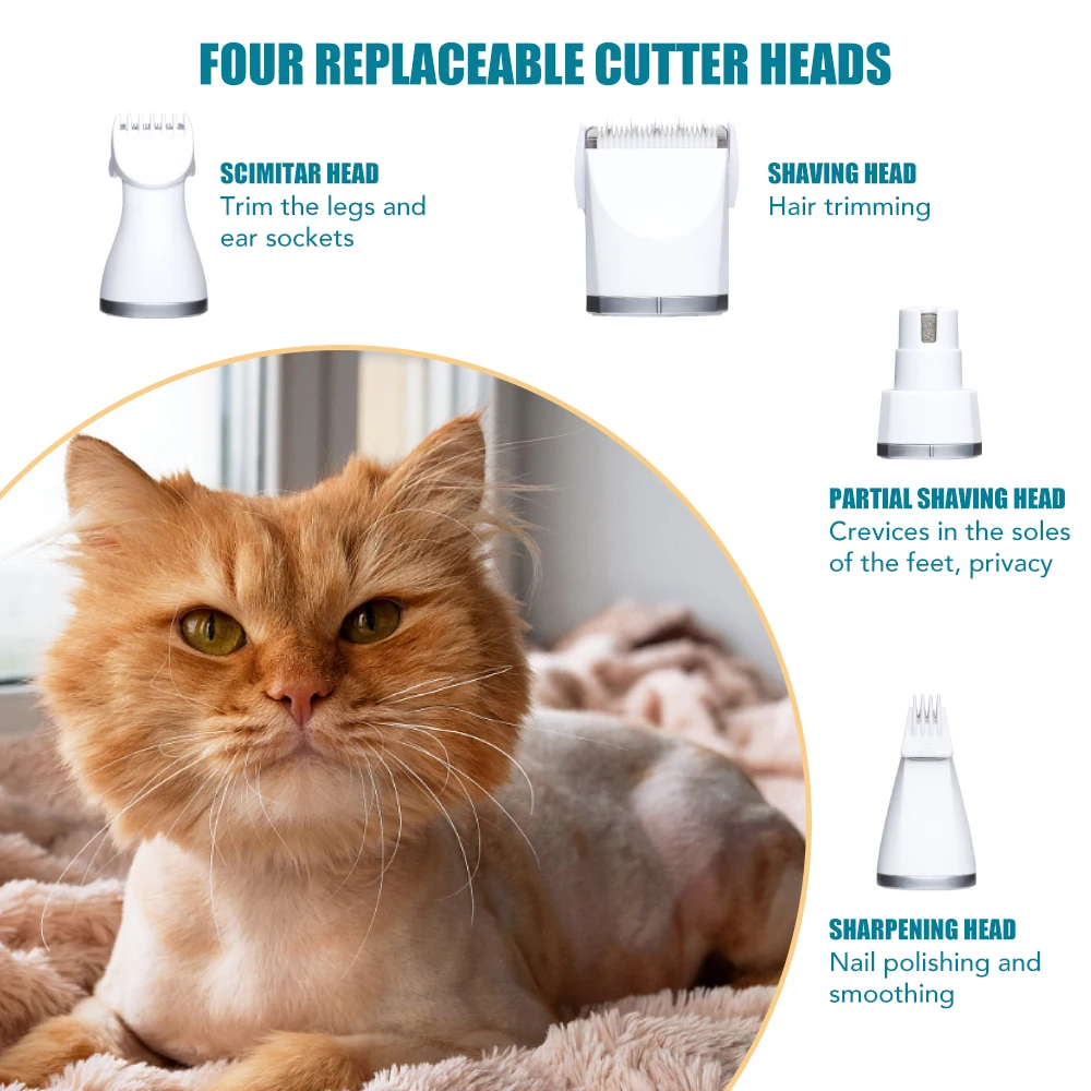 Pet Hair Clipper Cat Dog Hair Clippers Grooming Haircut with 4 Blades Trimmer Shaver Set Pets Cordless Rechargeable Professional