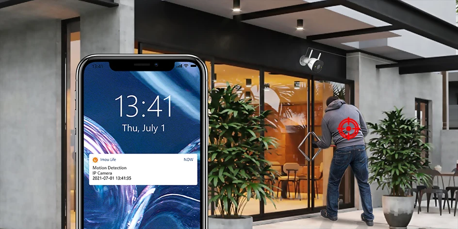 Когда наружная камера безопасности обнаруживает движение, она отправит Оповещение на ваш телефон в течение одной секунды.