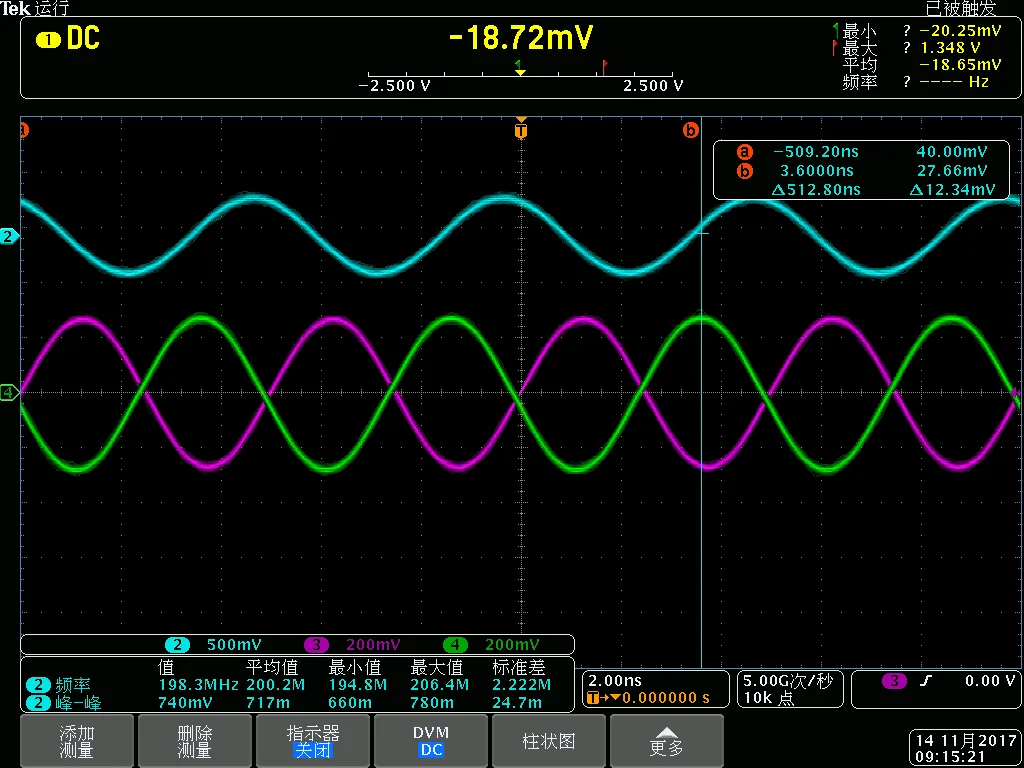 Четыре, частичная измеренная Форма волны (50 МГц 200 МГц 500 МГц) 3 измерения GBaron