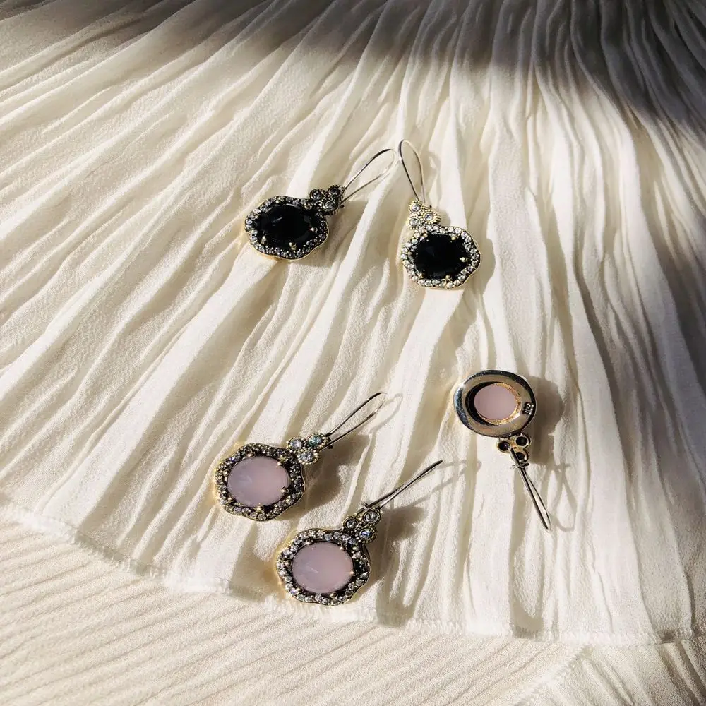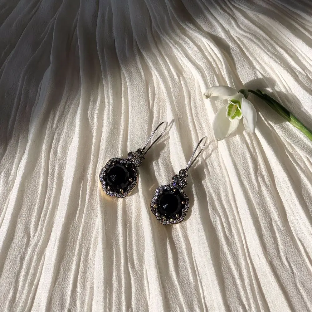925 пробы серебряные Кварцевые/Onix серьги с натуральным камнем Hurrem Sultan