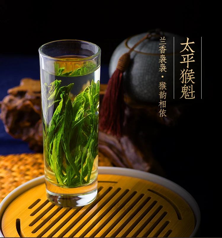 Taiping Monkey Queen, один из известных чая в китайской истории, это своего рода зеленый чай. Taiping Monkey Queen имеет два листа с бутонами, плоскими и прямыми, естественно растягивающимися и скрытыми в белом цвете. Он имеет репутацию «Королева обезьяны имеет два острых конца, не разбросан, не деформируется, не свернут». Листья зеленые и ровные, вены темно-красные, широко известные как «красная шелковая нить». Аромат орхидеи очень освежающий, мягкий и сладкий вкус, суп чистый и зеленый, дно листьев нежное и ровное, а почки и листья становятся крепкими.