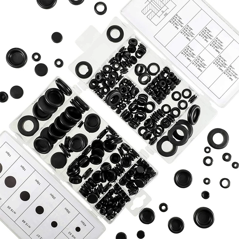 Посылка: Есть два типа резиновых втулок в посылка, хранящихся в пластиковой коробке; Включая резиновые втулки без отверстий и резиновые прокладки, резиновые прокладки предназначены для покрытия отверстий, которые больше не используются и защищают кабели или провода; Кольцо прокладка предназначена для работы через брандмауэр.