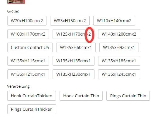 Например: W125 × H170 × 2-это двухсекционная штора, Общая Ширина-250 см, W125 × H170-цельная штора, ширина-125 см