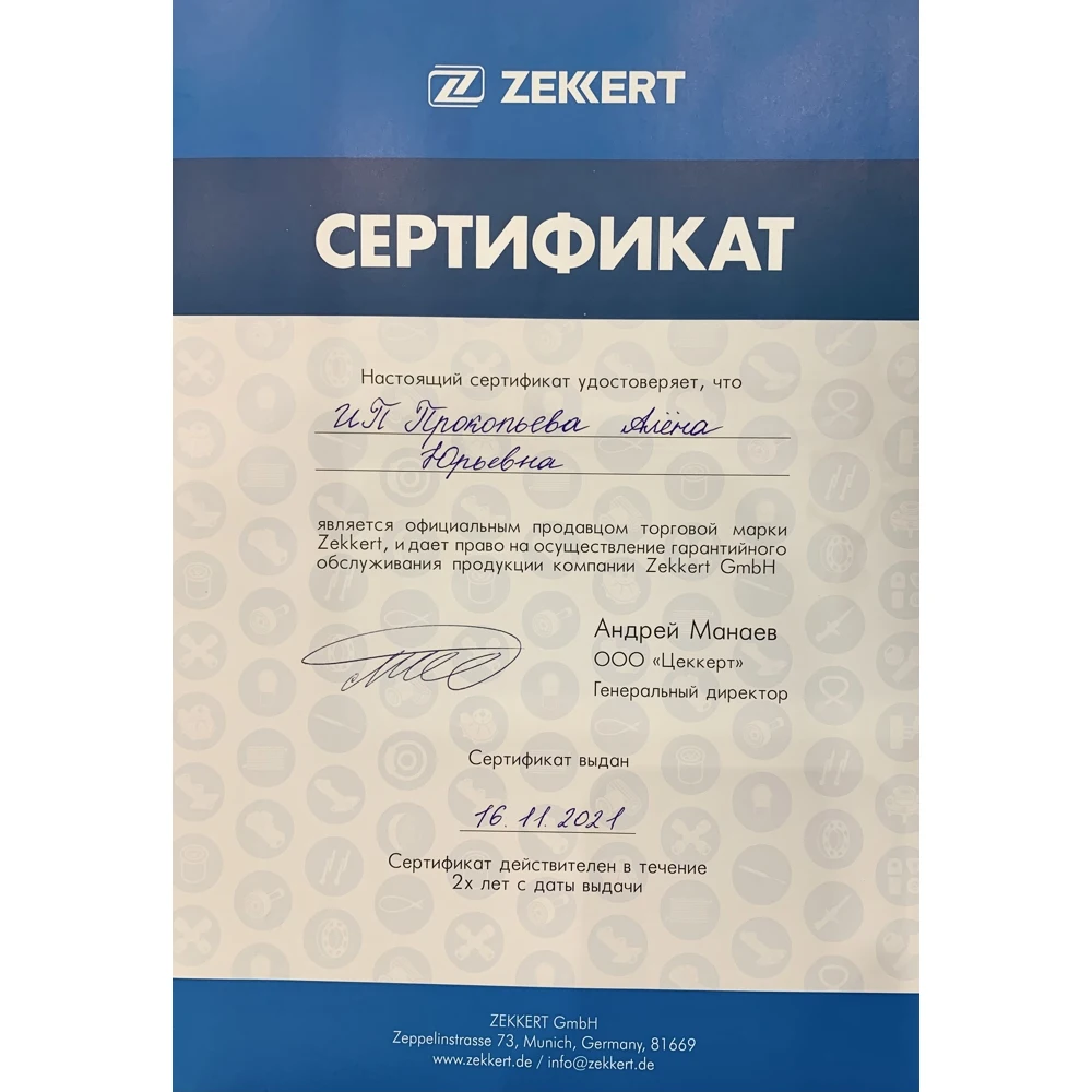Немецкая компания Zekkert GmbH поставляет запасные части для легковых автомобилей под собственной торговой маркой Zekkert. Компания быстро и успешно вошла на европейский рынок в области поставок запасных частей для легковых автомобилей. Благодаря качественному и скрупулезному подходу к обслуживанию клиентов, а так же добросовестному отношению к поставщикам, сегодня компания Zekkert имеет репутацию сильного партнера.