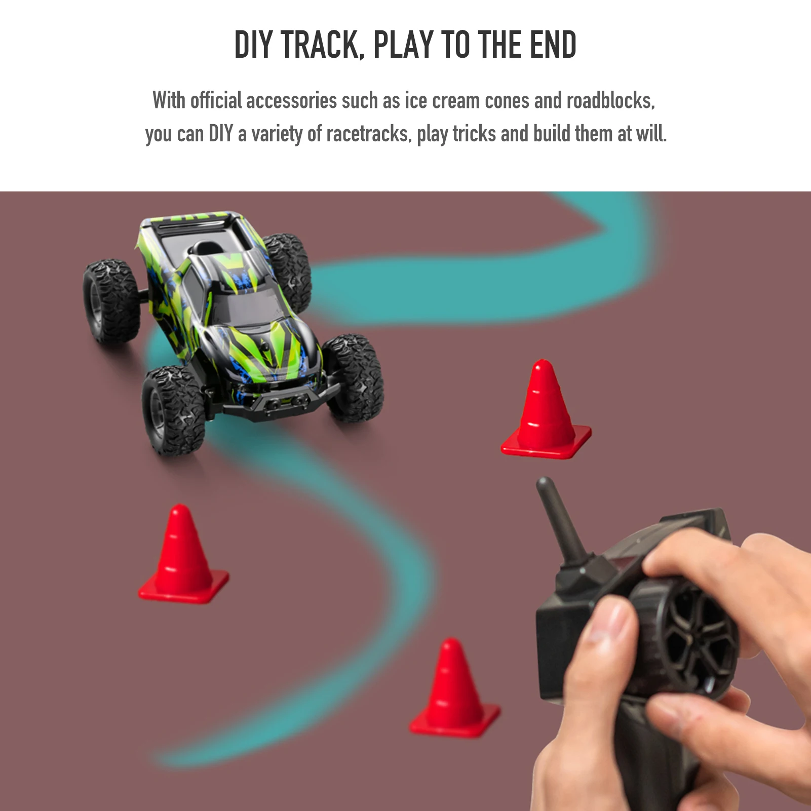 【Сделай сам трек и сильная не помехающая производительность с официальными аксессуарами, такими как конусы мороженого и дорожные блоки, Вы можете DIY различные гоночные треки, играть трюки и строить их по желанию. Кроме того, вы никогда не получите радиопомех с этим RC автомобилем, который вы можете контролировать его гибкость, чтобы ездить вперед или назад, поворачивать влево или вправо.