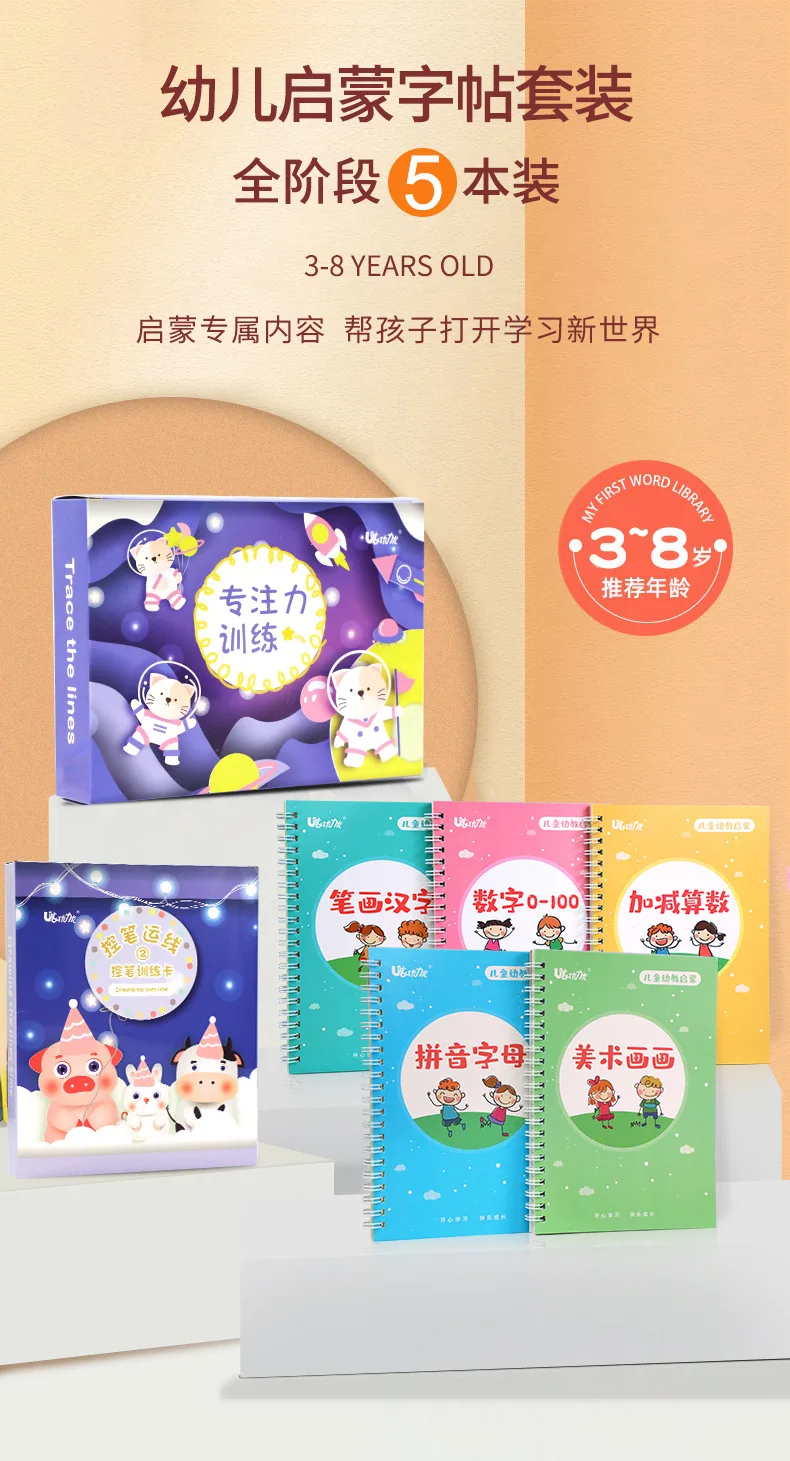 Благодаря трехмерному дизайну паза, эти книги для отслеживания почерка могут стандартизировать стандартный формат письма, весело, но практично для детей, чтобы использовать в повседневной жизни, повышают интерес: эти волшебные книги каллиграфии имеют забавную графическую комбинацию, яркие цвета и милые формы, которые могут повысить память и интерес ребенка, Приносит им много удовольствия, дети могут многому научиться от него