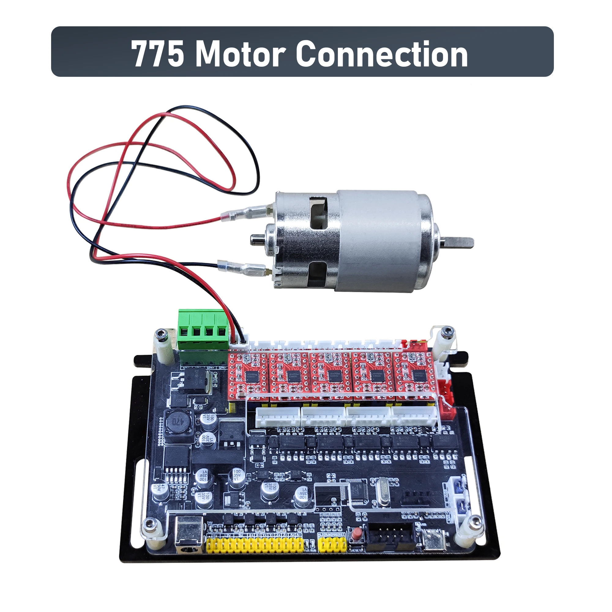 -- Может быть подключен к 775 электродвигателю/3pin лазеру, 2pin-2pin лазеру/автономному контроллеру