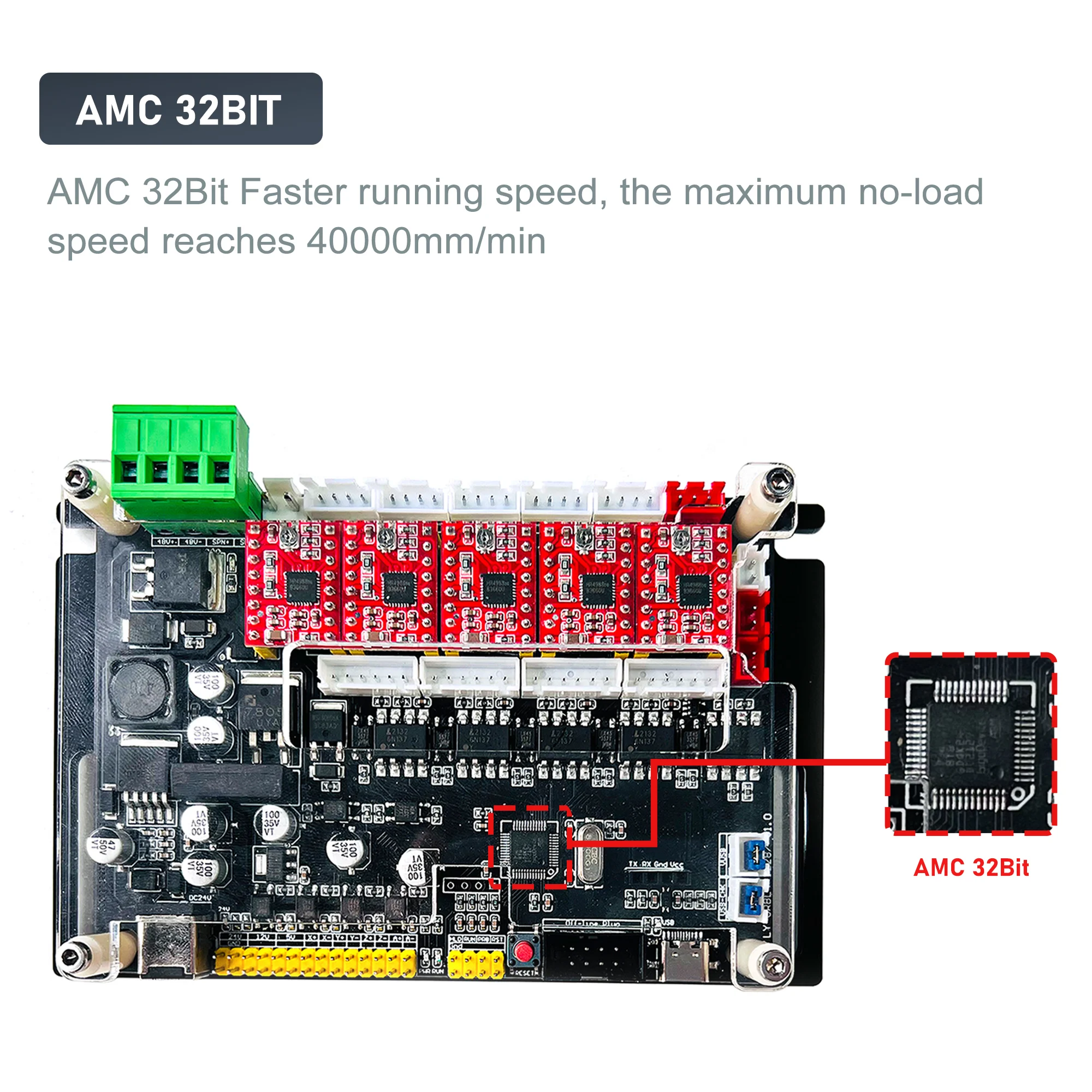 Скорость бега быстрее, Максимальная Скорость без нагрузки достигает 40000 мм/мин, алгоритм оптимизации лучше, вибрация меньше, когда машина движется на высокой скорости, и производительность более стабильна