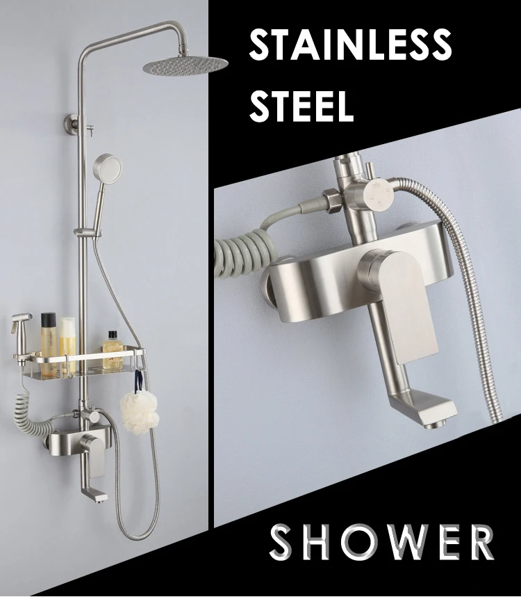 Набор матовой душевой системы из нержавеющей стали 304, кран для ванны, настенный кран для горячей и холодной ванной комнаты, круглая Душевая насадка Chuveiro