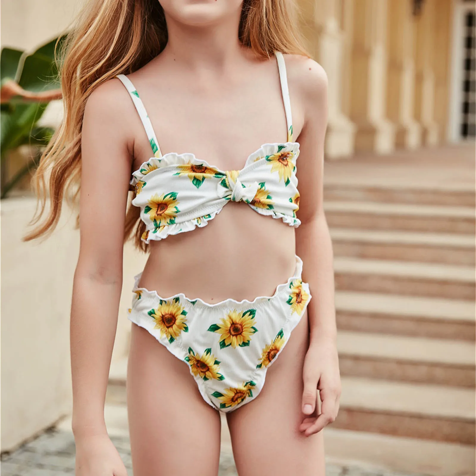 Праздничный комплект бикини для девочек с милым принтом макраме; Купальный костюм из двух предметов