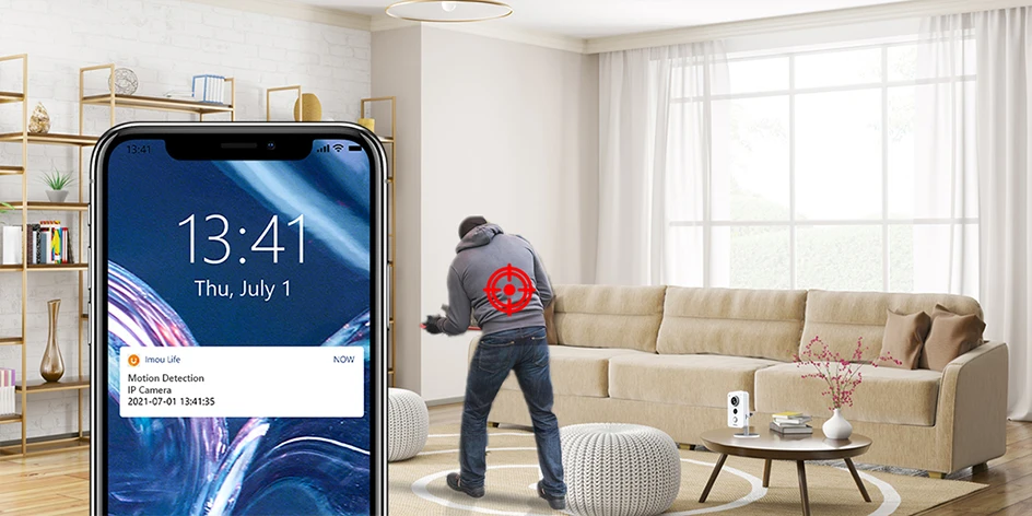 PIR автоматически отправляет уведомление на ваш смартфон, когда он обнаруживает кого-то, что позволяет вам знать, что происходит из любого места.