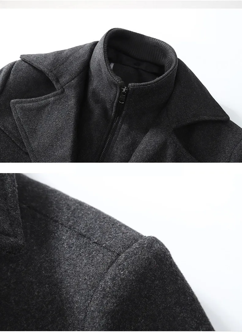Классические мужские шерстяные пальто, Осень-зима, однотонные, устойчивые к холоду шерстяные пальто, мужские повседневные тренчи с двойным воротником