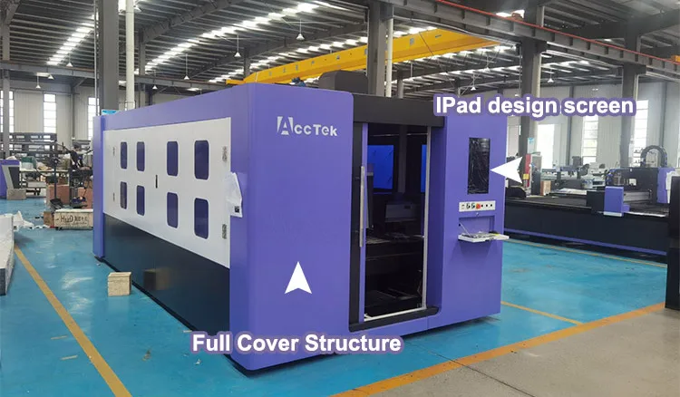 Полностью покрытая листовая металлическая волоконная Лазерная Cuttig машина Raycus IPG для резки меди и латуни из нержавеющей стали из углеродистой алюминиевой стали 6 кВт