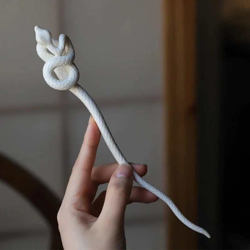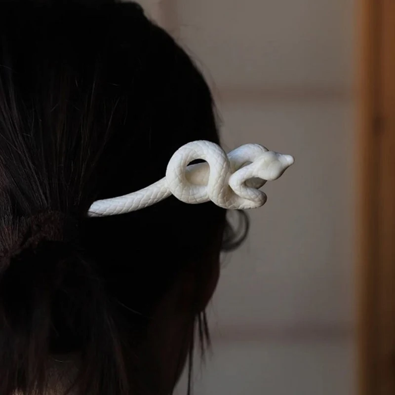 Простые аксессуары для волос, винтажная белая шпилька в виде змеи, китайский старинный стиль, заколка для волос, модная заколка для волос, головные уборы, вилки для волос