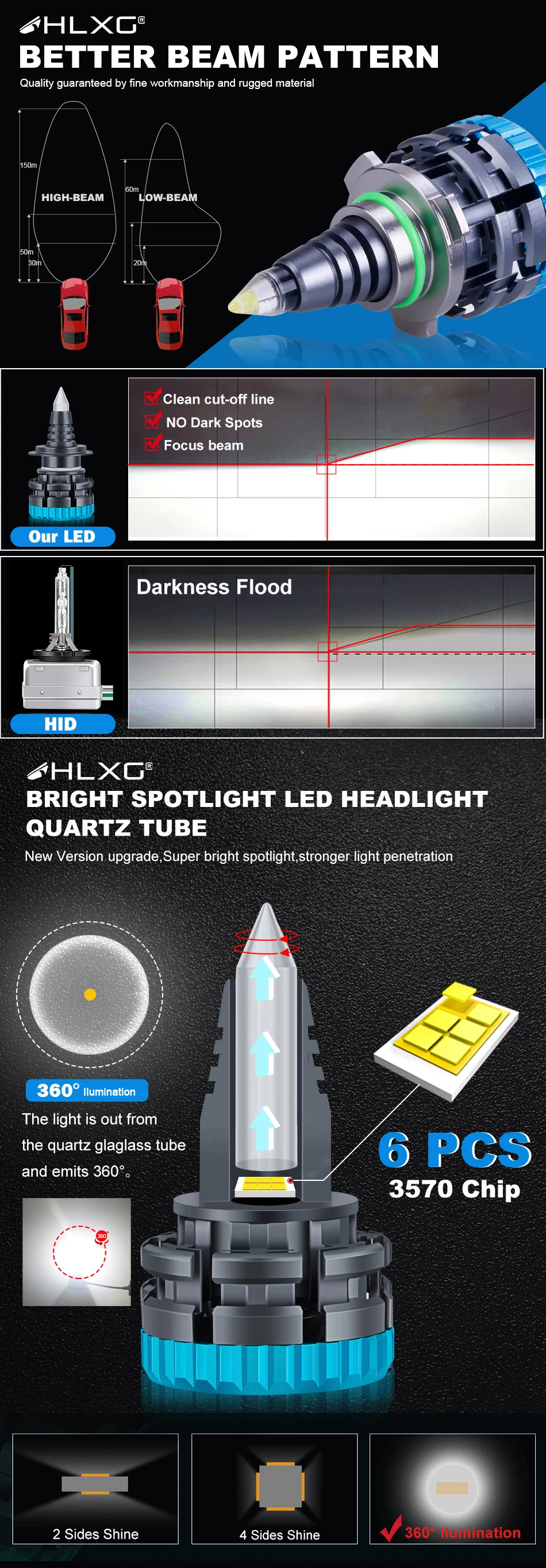 2 шт. 1 год гарантии HLXG светодиодный лампы для фар
