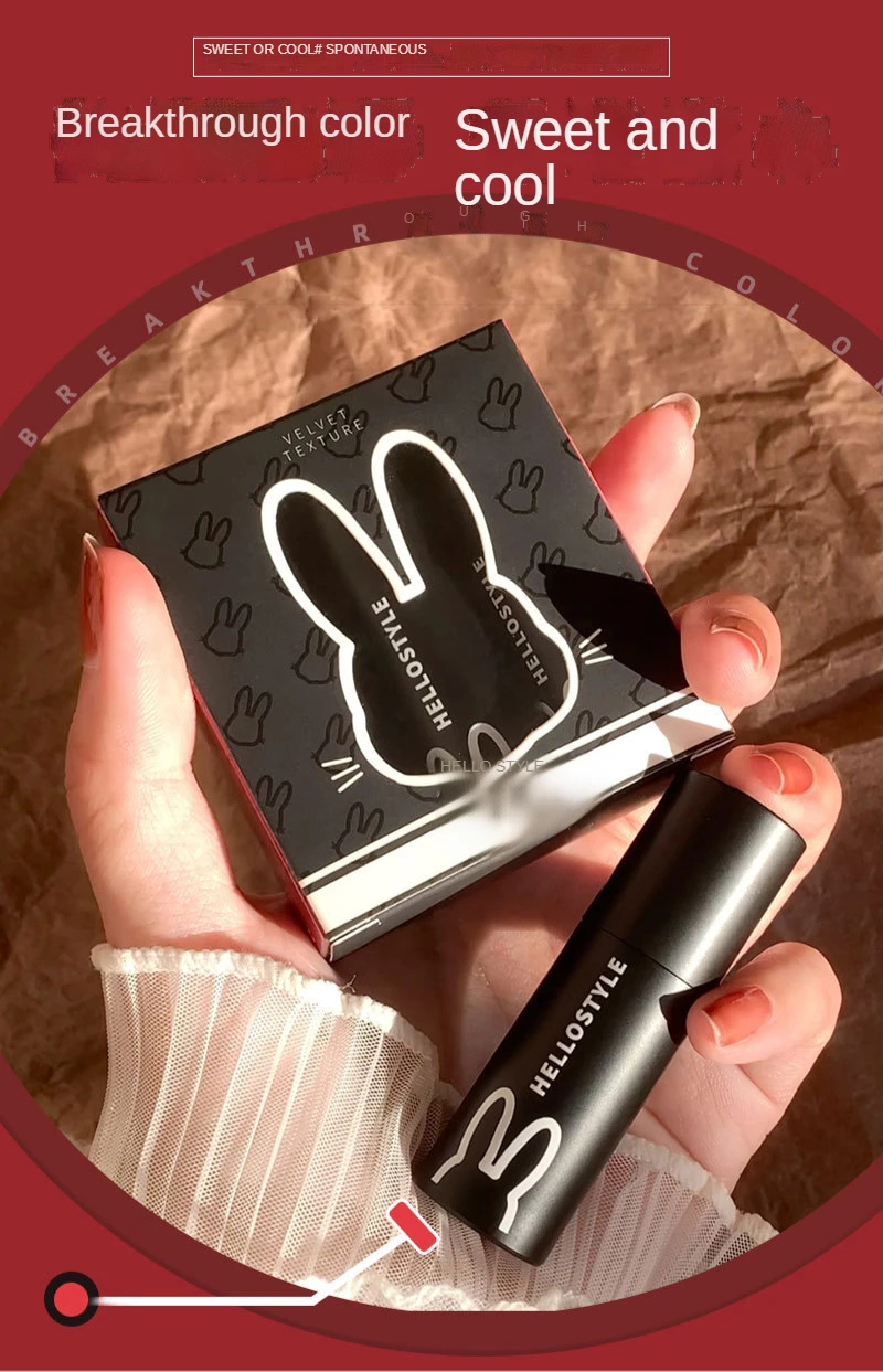 Мультяшная девочка, черный кролик, губы, глазурь, черные губы, грязь, увлажняющая, Мисти, маленькие, легко Окрашиваемые, дешевые, простые, бархатные, матовые, для студентов