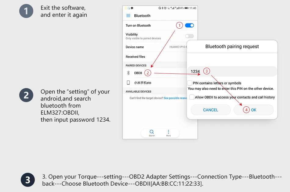 Bluetooth-устройство ---- OBDII[AA:BB:CC:11:22:33].