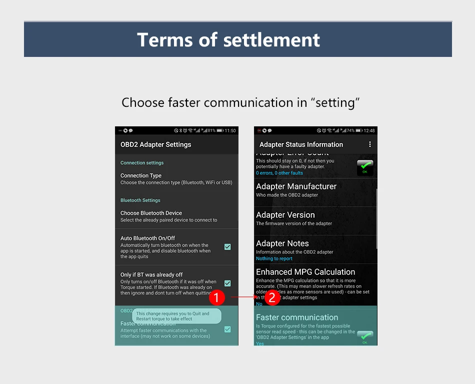 3. Откройте крутящий момент ---- настройки --- настройки адаптеров OBD2