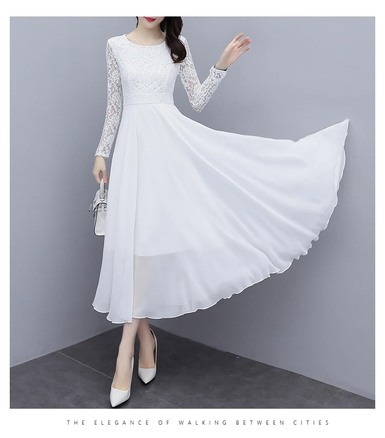 Женское шифоновое платье с длинным рукавом TingYiLi, Черное и белое платье-трапеция с высокой талией на весну и лето