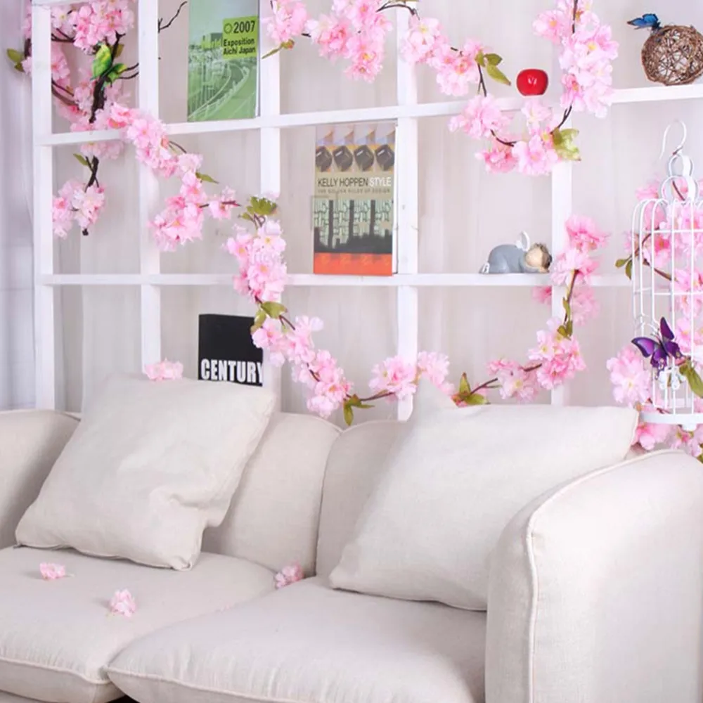 Искусственные цветы вишни лозы Висячие шелковые цветы гирлянда для свадебной вечеринки домашний декор