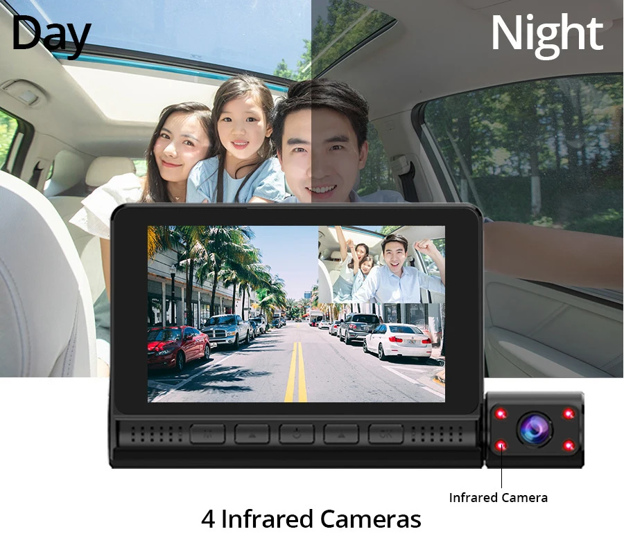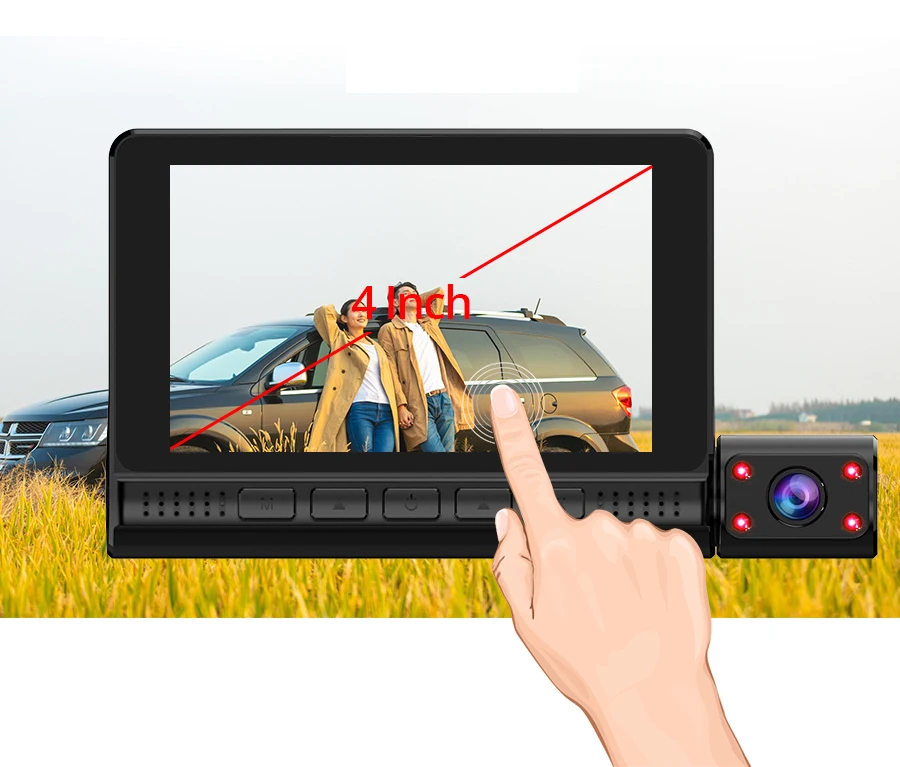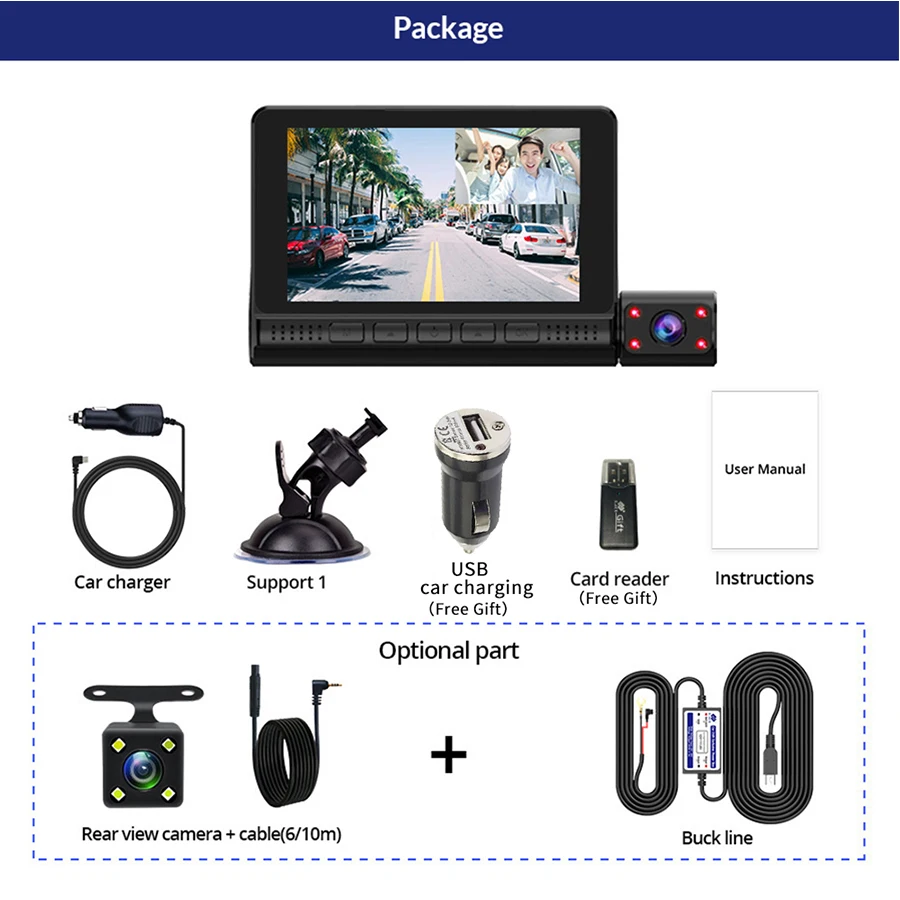 Dashcam Автомобильный видеорегистратор 4 дюймовый сенсорный экран Full HD 1080P 3 объектив Портативный видеорегистратор с камерой заднего вида g-сенсор автоматический Регистратор