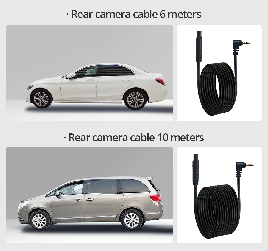 Есть 2 длины задней камеры (до 10 метров) может быть выбран, подходит для автомобилей различной длины. Пожалуйста, выберите заднюю камеру в соответствии с длиной вашего автомобиля.
