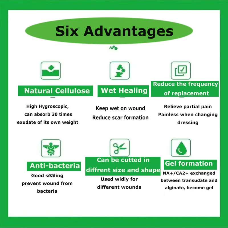 5.The amount of exudate absorbed is 17-30 times its own weight (the amount of absorption varies with different specifications).