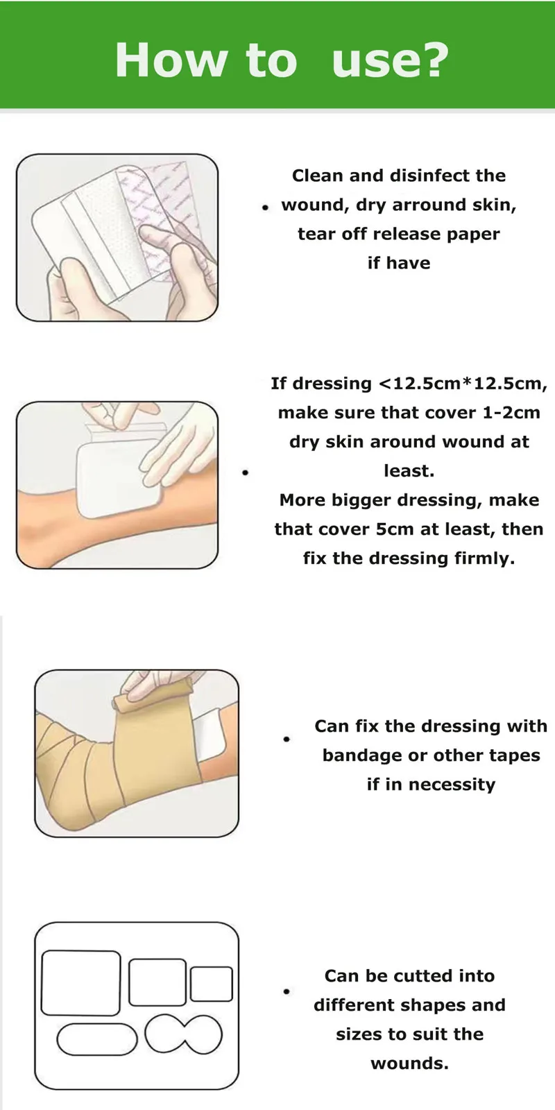 7.It can be cut at will, conforms to the contour of the wound shape.