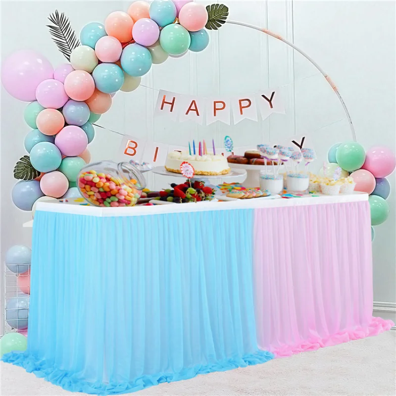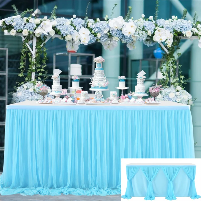 Идеальное Украшение: настольная юбка поддерживает различные способы отображения, драпировки естественным образом или привязывается к вашей любимой форме, добавляя красивый цвет в ваши вечерние, подходит для всех видов вечерние украшения, вечерние дни рождения, свадебные украшения, пол раскрывает вечерние, имеет больше смысл, чтобы украсить ваш праздник