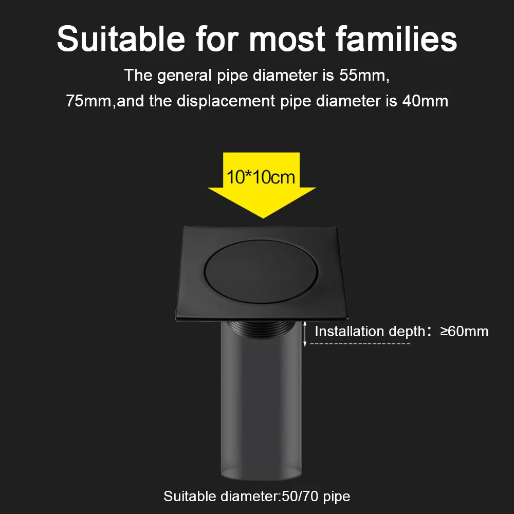 Особенности: 100% Новый бренд Изготовлен из высококачественного медного материала, не ржавеет, не подвержен коррозии и долговечен в использовании. Отскакивающий слив пола, один дренаж, очень простой и удобный. Быстрый дренаж, защита от запаха, защита от насекомых, защита от обратной воды. Прочный, анти-запах прыгающий, быстрый дренаж, анти-обратная вода, анти-насекомых, анти-засорение. Функция двойного фильтра, защита от засорения; Встроенное силиконовое кольцо для хорошей герметизации. Легко и просто установить и управлять. Твердый медный материал, не портится в воде. Подходит для домашней ванной комнаты/кухни/туалета. Размер: 10 см * 10 см * 5 см Материал: вся медь Цвет: черный, серебристый Примечание: Настоящий цвет товара может незначительно отличаться от изображений на веб-сайте из-за таких факторов, как яркость монитора, яркость освещения и т. д. Возможны незначительные отклонения в измерениях вручную для dat Посылка включает в себя: