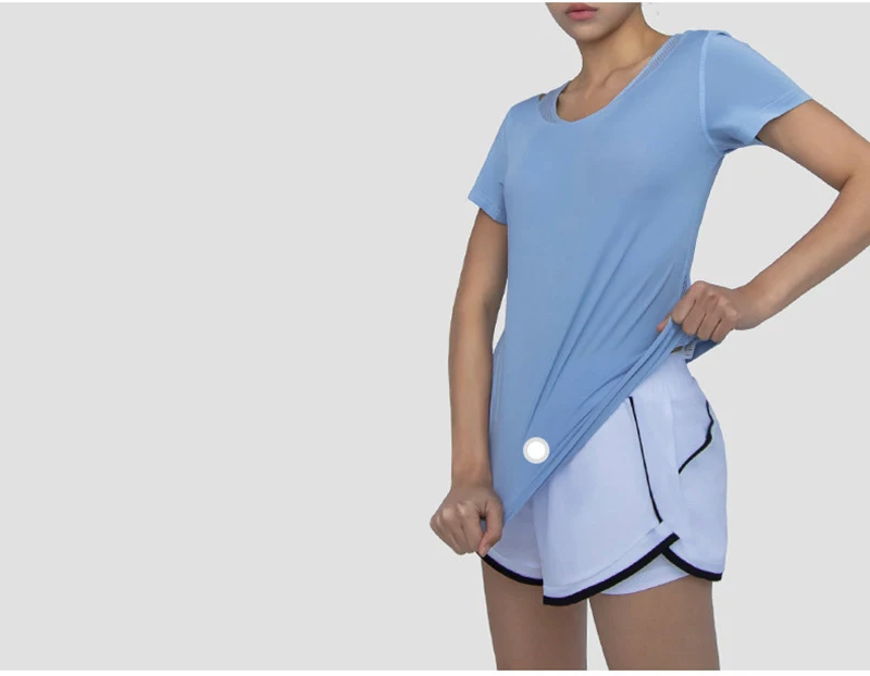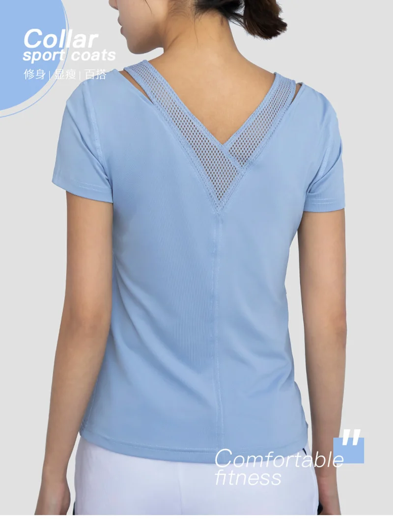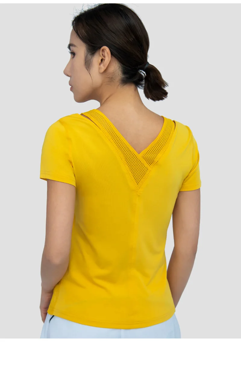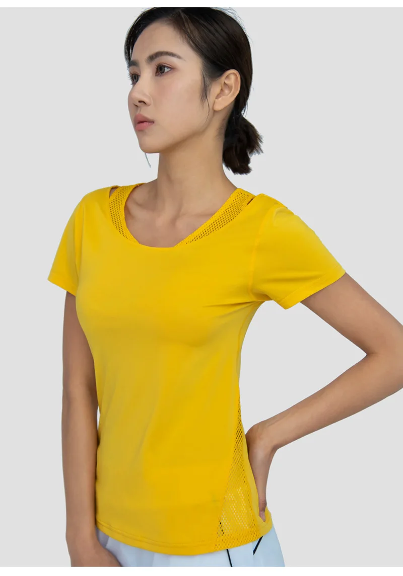 Новая женская быстросохнущая дышащая спортивная футболка с коротким рукавом для йоги